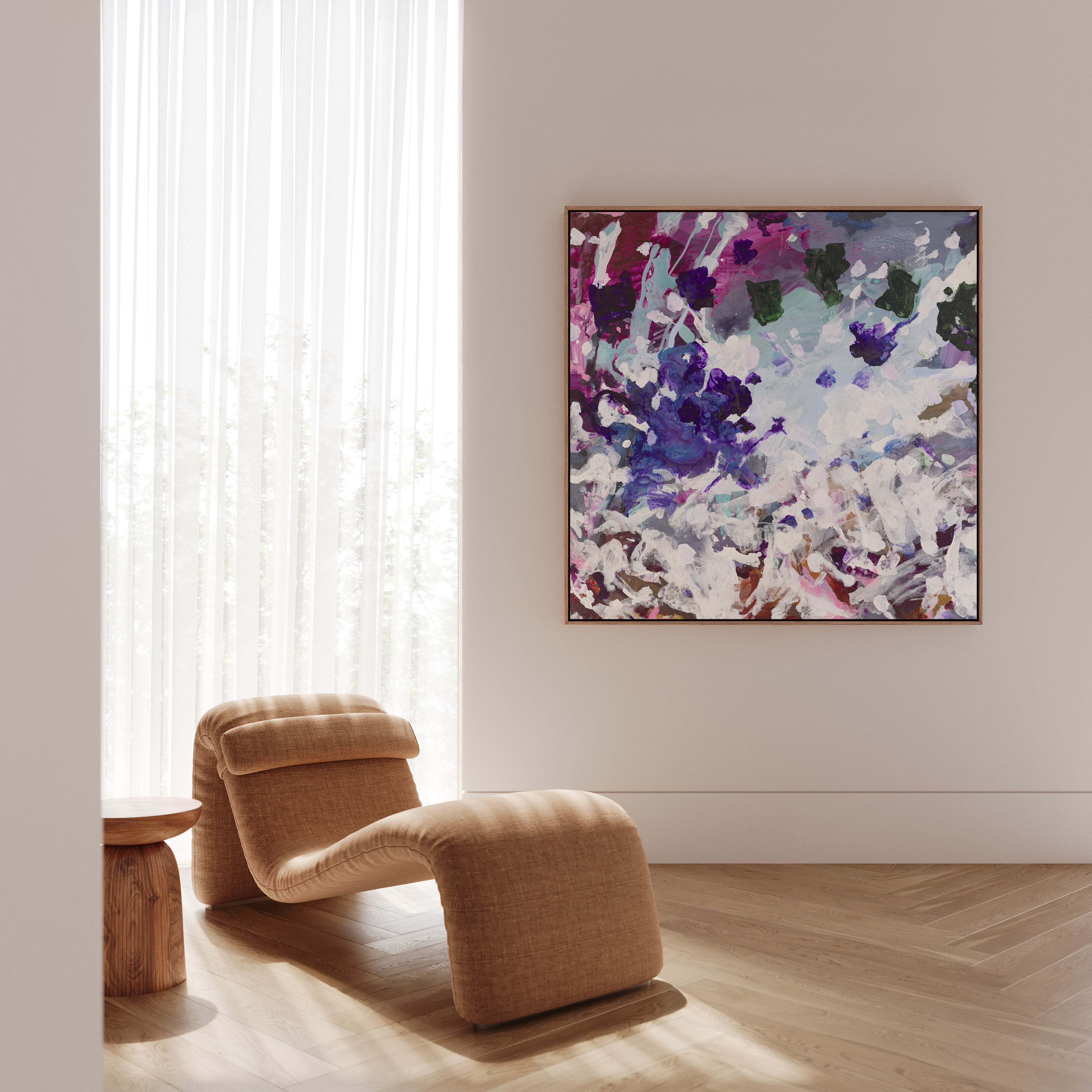Every artwork is completed with a hand-crafted timber frame, designed to complement both the piece and its surrounding space.