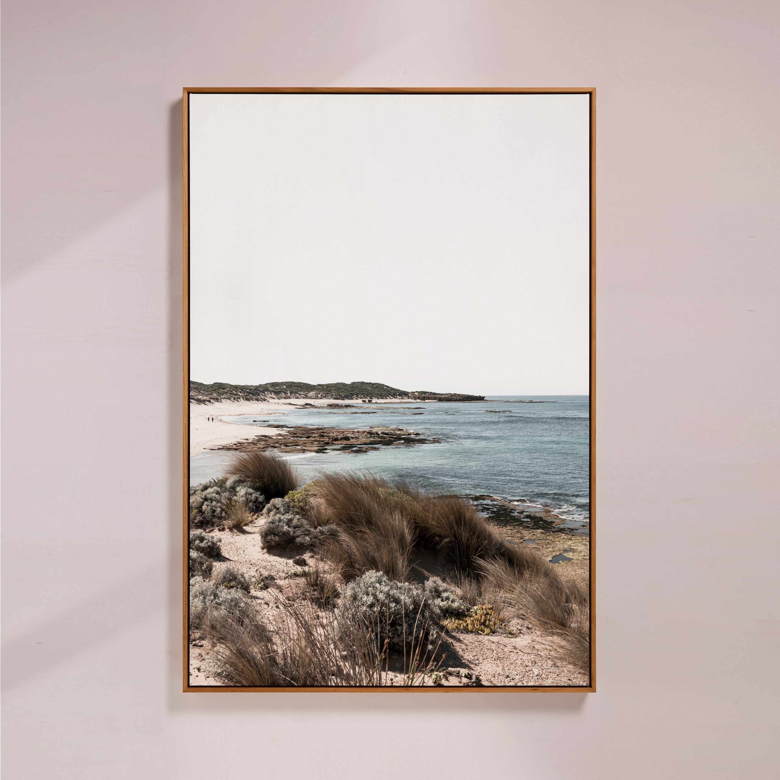 Canvas artworks are stretched and finished within a floating (shadow-box) frame, leaving a subtle shadow gap between the edge of the canvas and the frame. This design allows the artwork to appear as if it is gently suspended inside the frame, creating a clean, modern profile that elevates the piece without distraction.