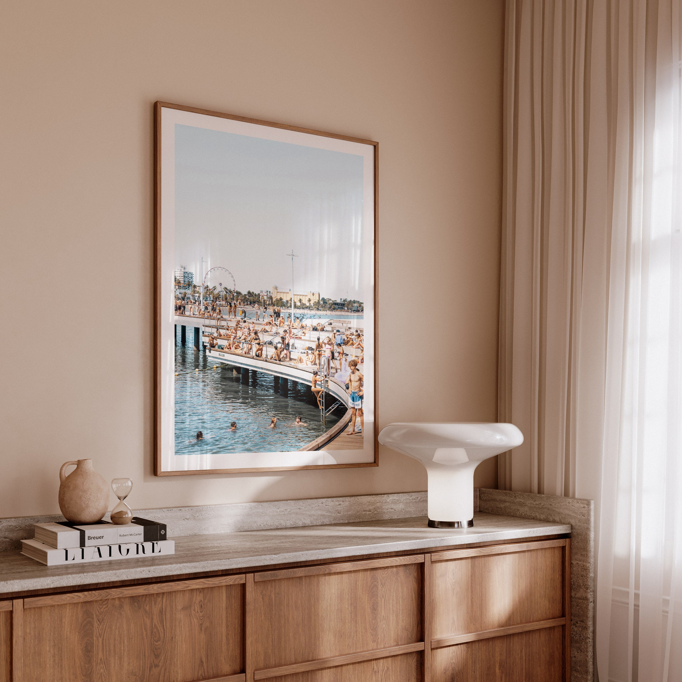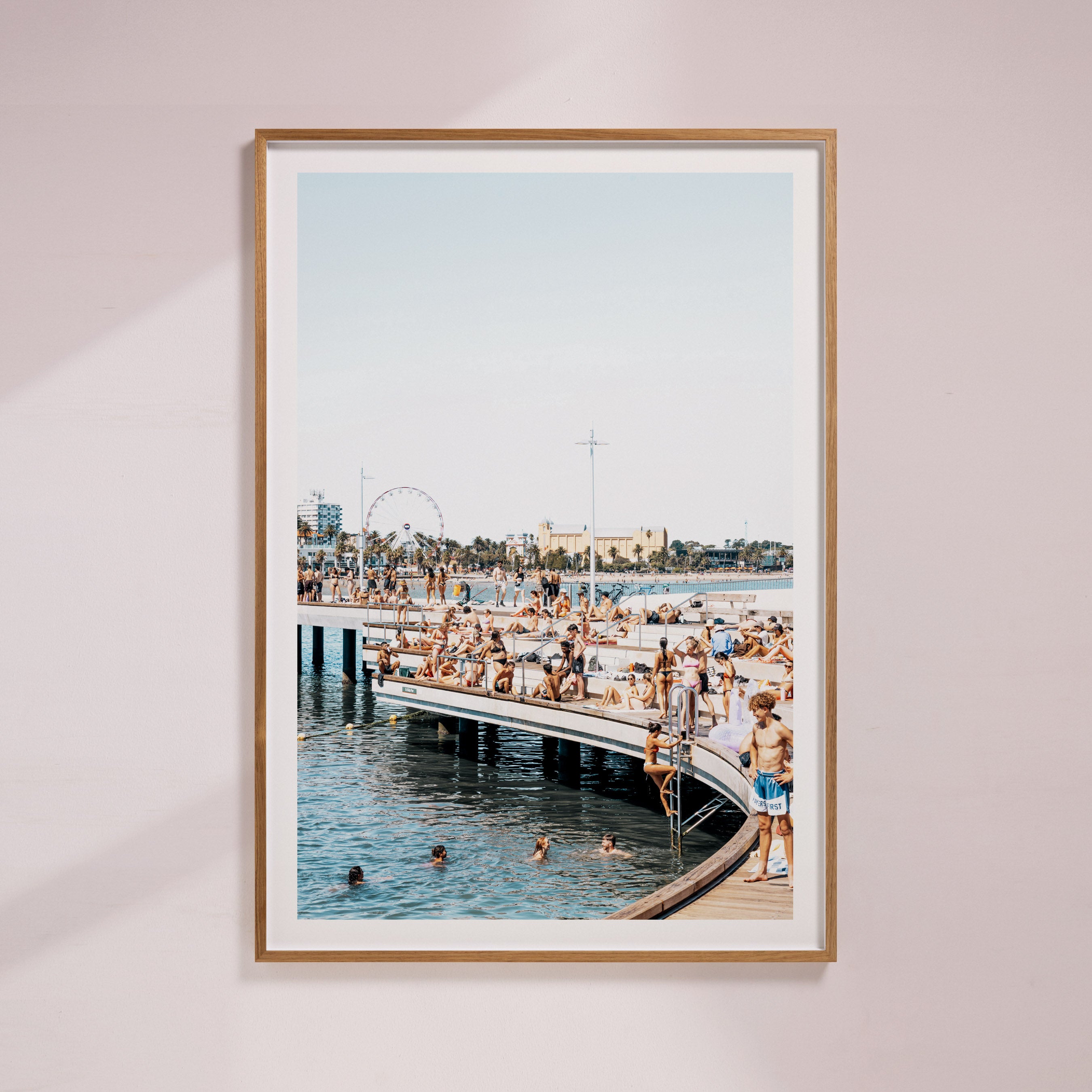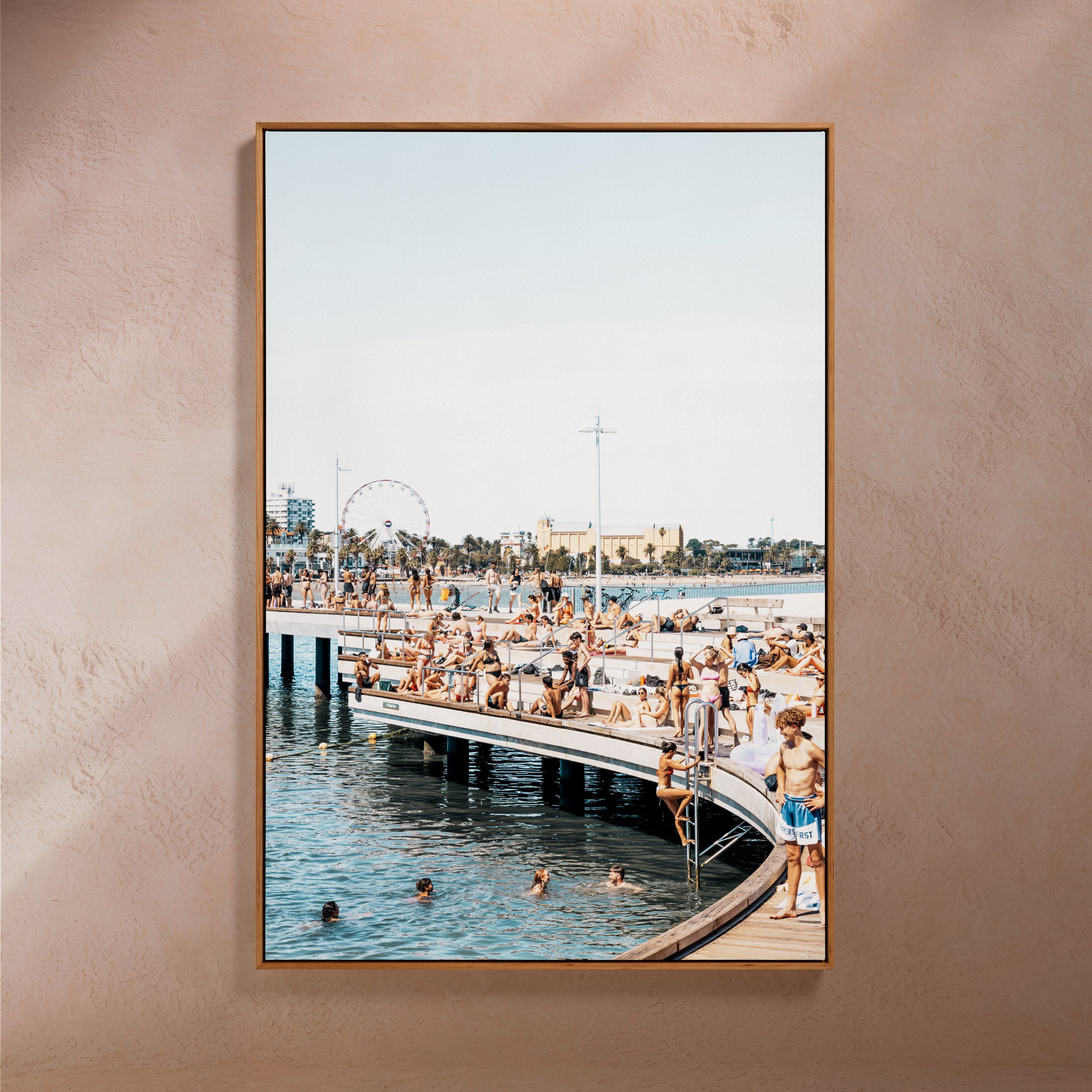 Taken at St Kilda Pier, Melbourne, Australia - This beach photography artwork captures the rhythm and energy of the coastline, where people, light, water, and movement come together.