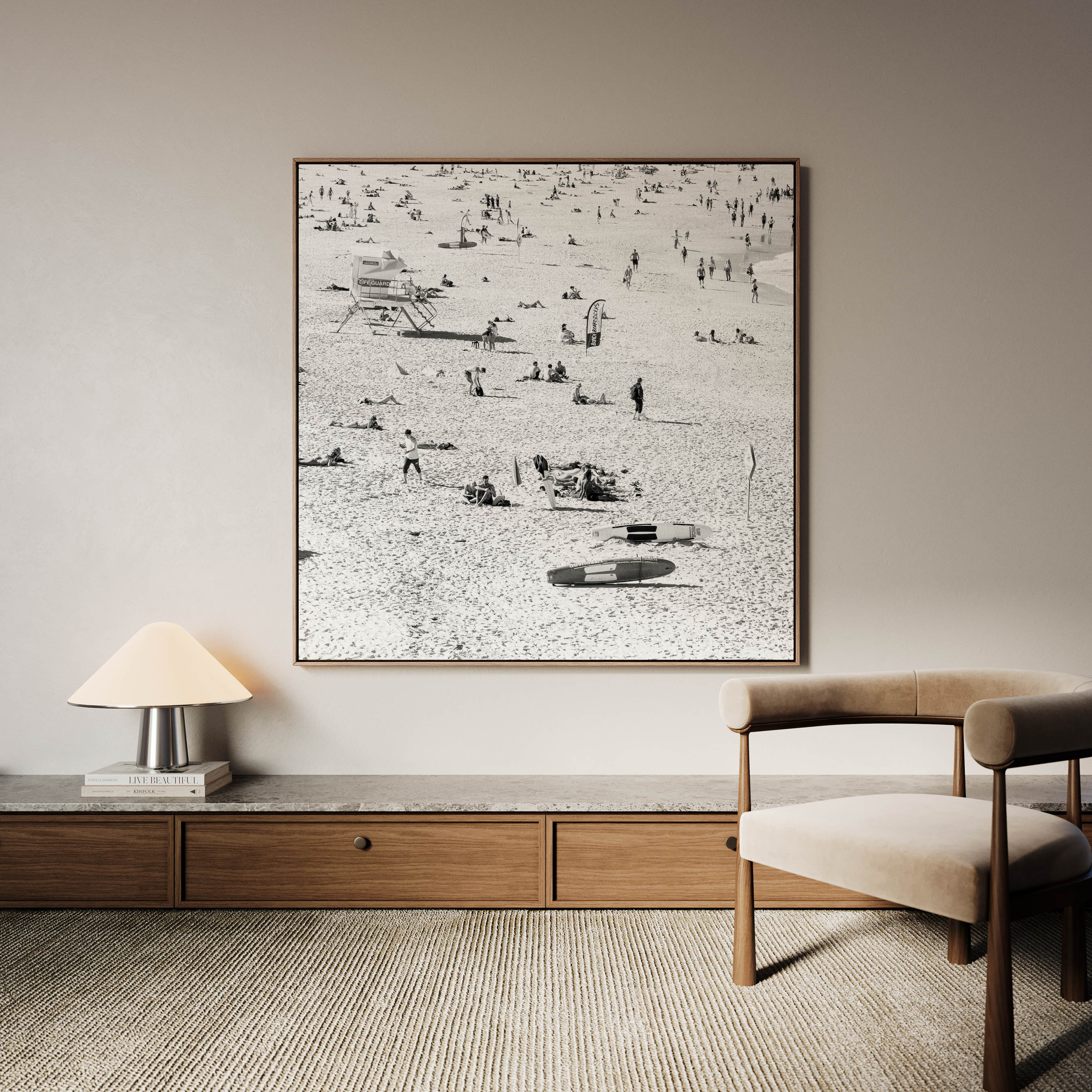 Every artwork is completed with a hand-crafted timber frame, designed to complement both the piece and its surrounding space.
