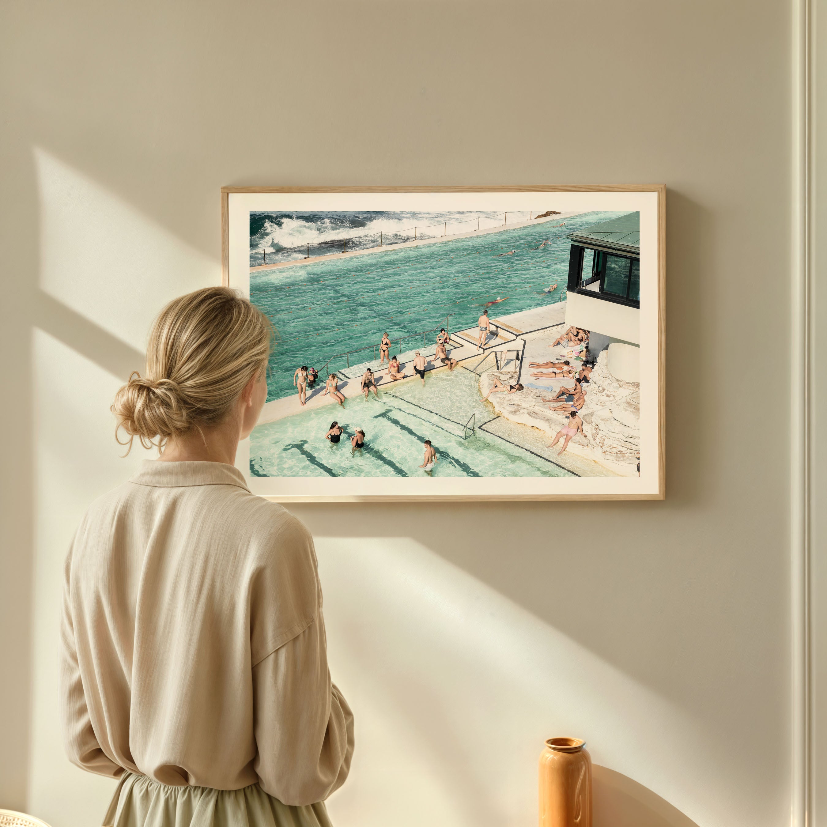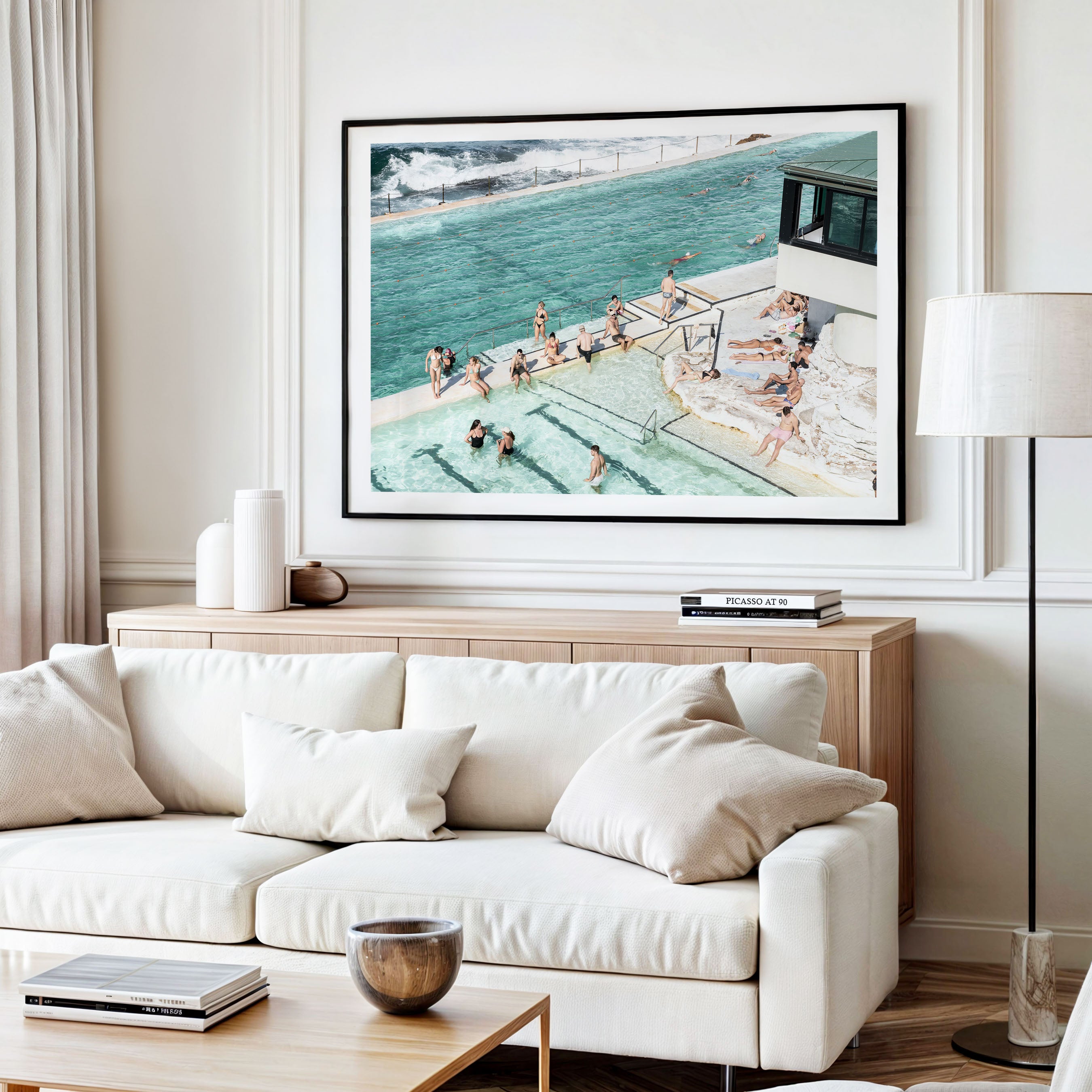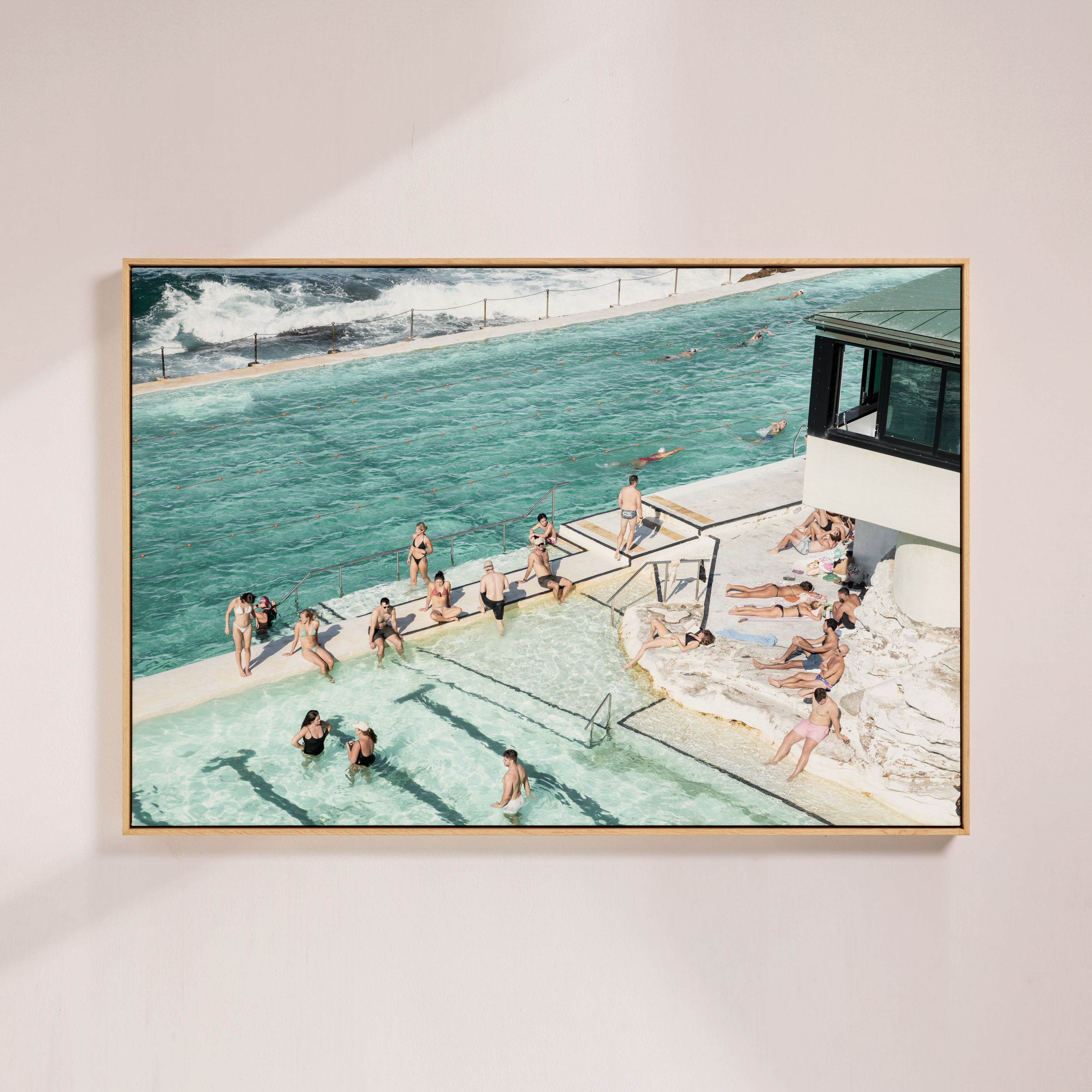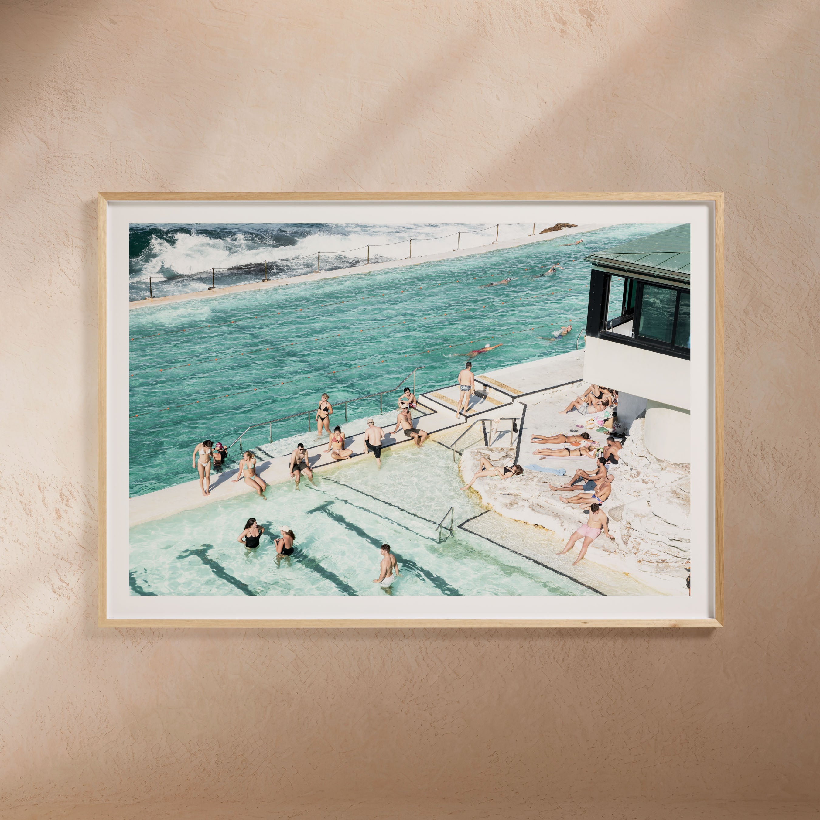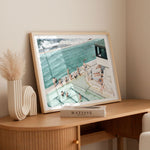 Perfect for modern, coastal, or eclectic interiors, Icebergs Bathers brings a refreshing and lively vibe to your home. The contrast between the tranquil pool and the dynamic ocean creates a unique and captivating scene. This piece adds a touch of Bondi's vibrant lifestyle and coastal charm to any room.