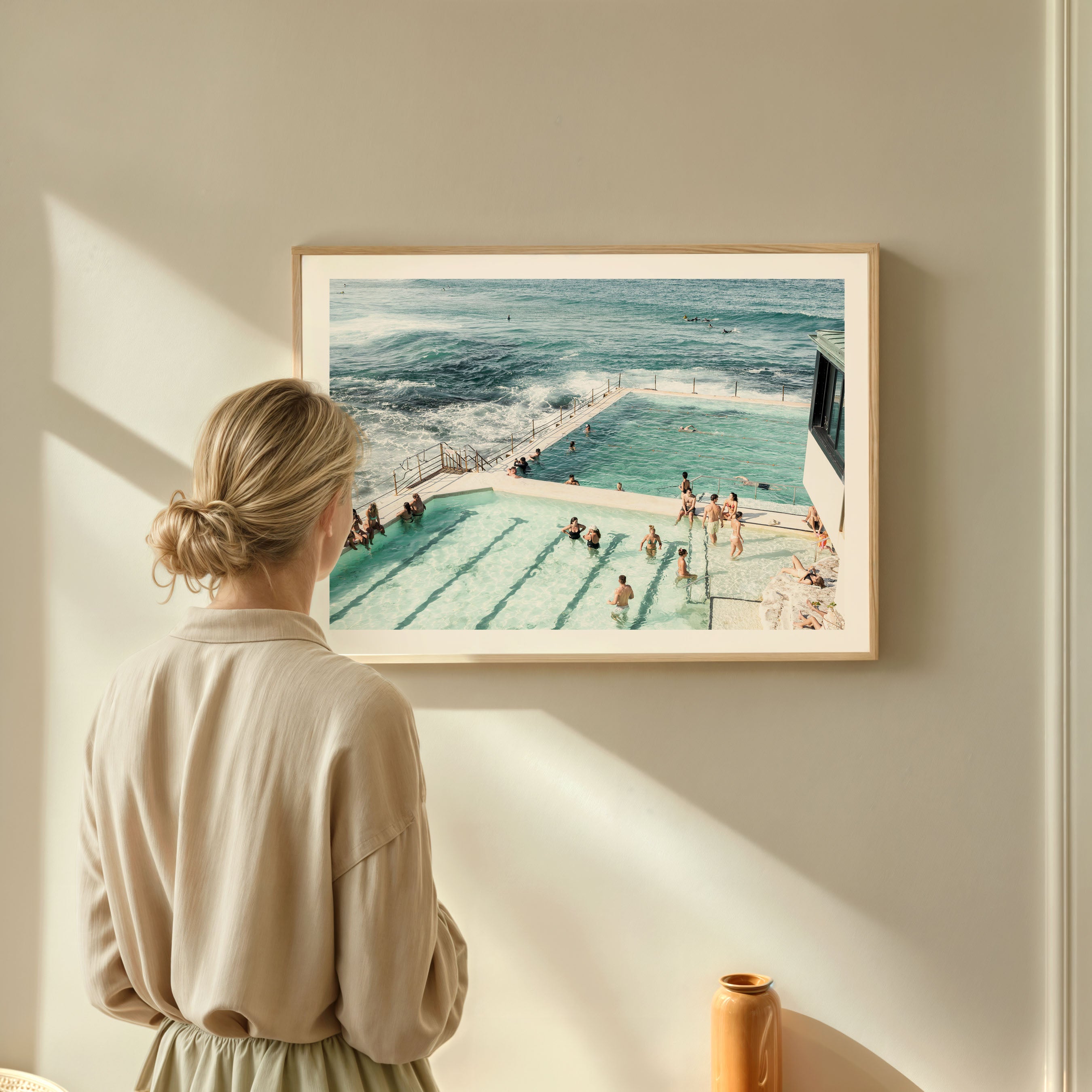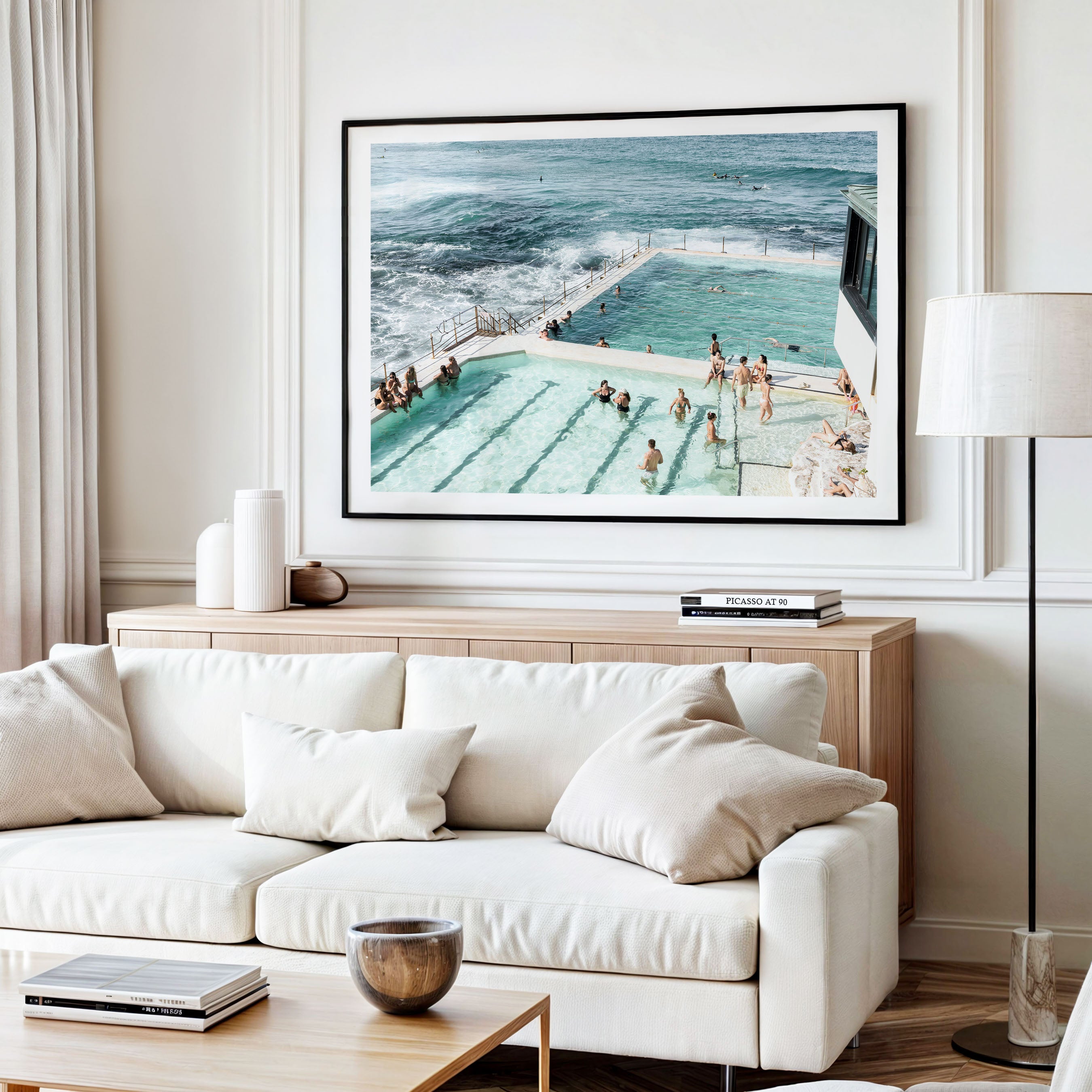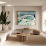 Icebergs Ocean View captures the iconic Bondi Icebergs pool, seamlessly blending the serene waters of the pool with the powerful waves of the ocean. This vibrant photograph showcases swimmers enjoying the crystal-clear pool while the ocean waves crash nearby.