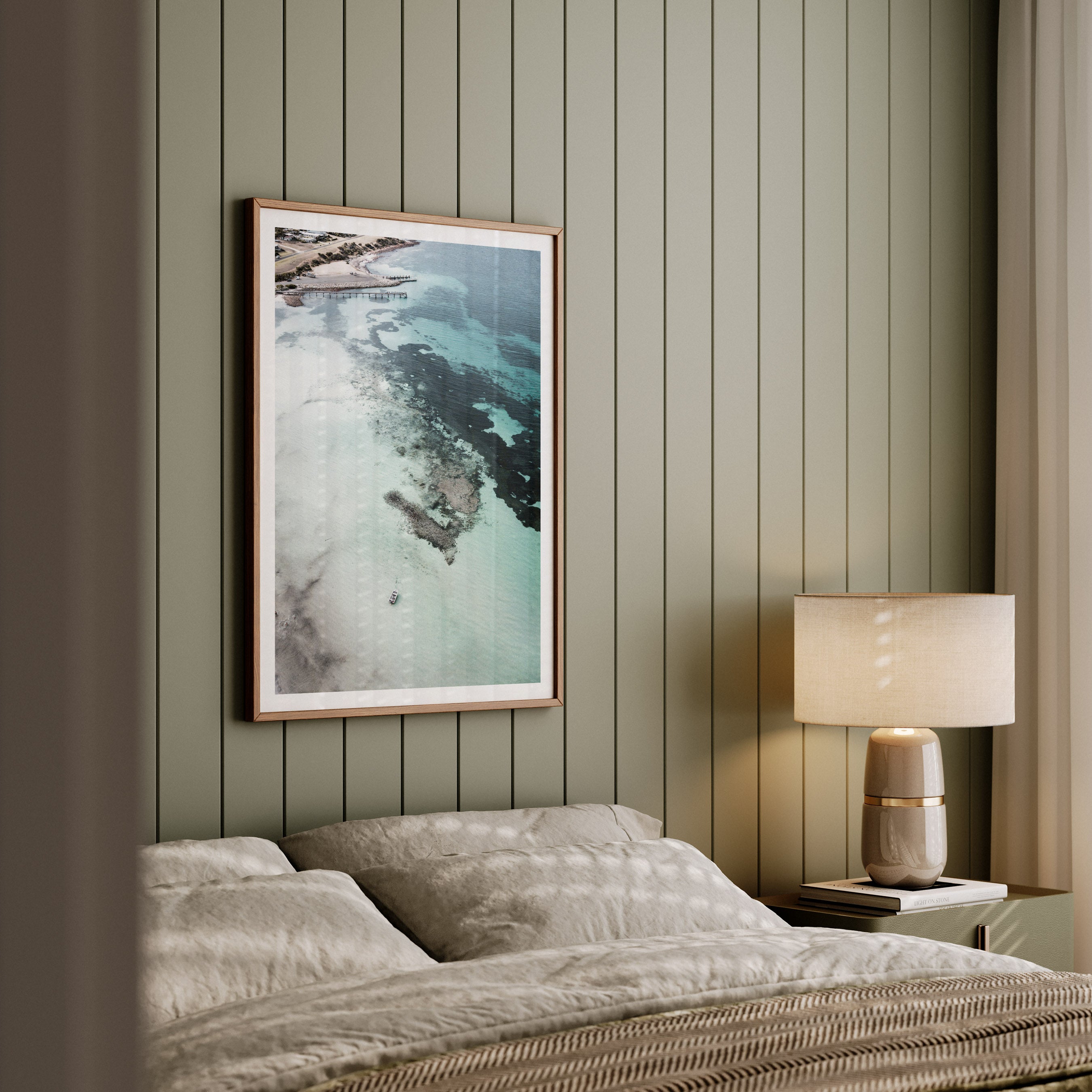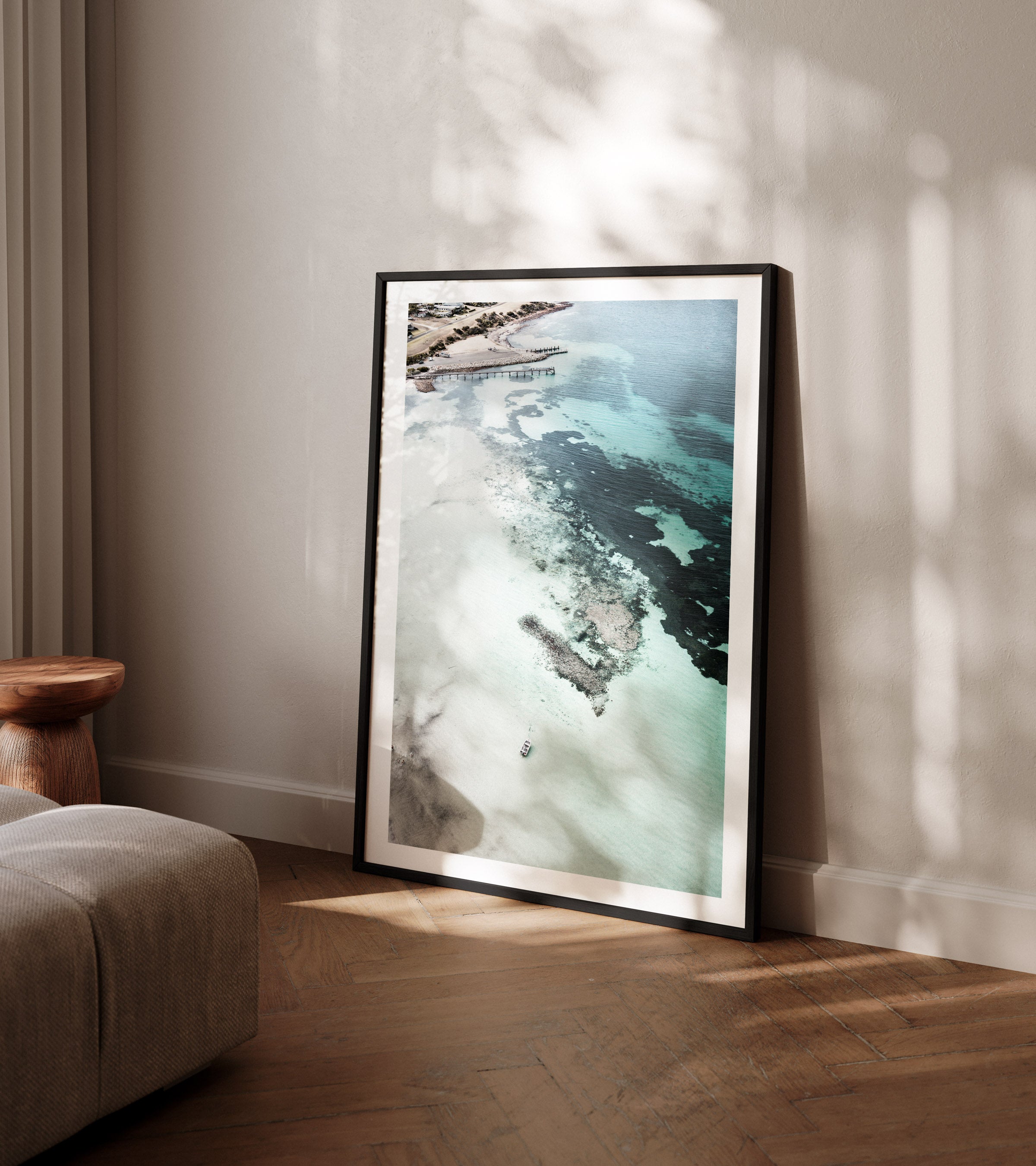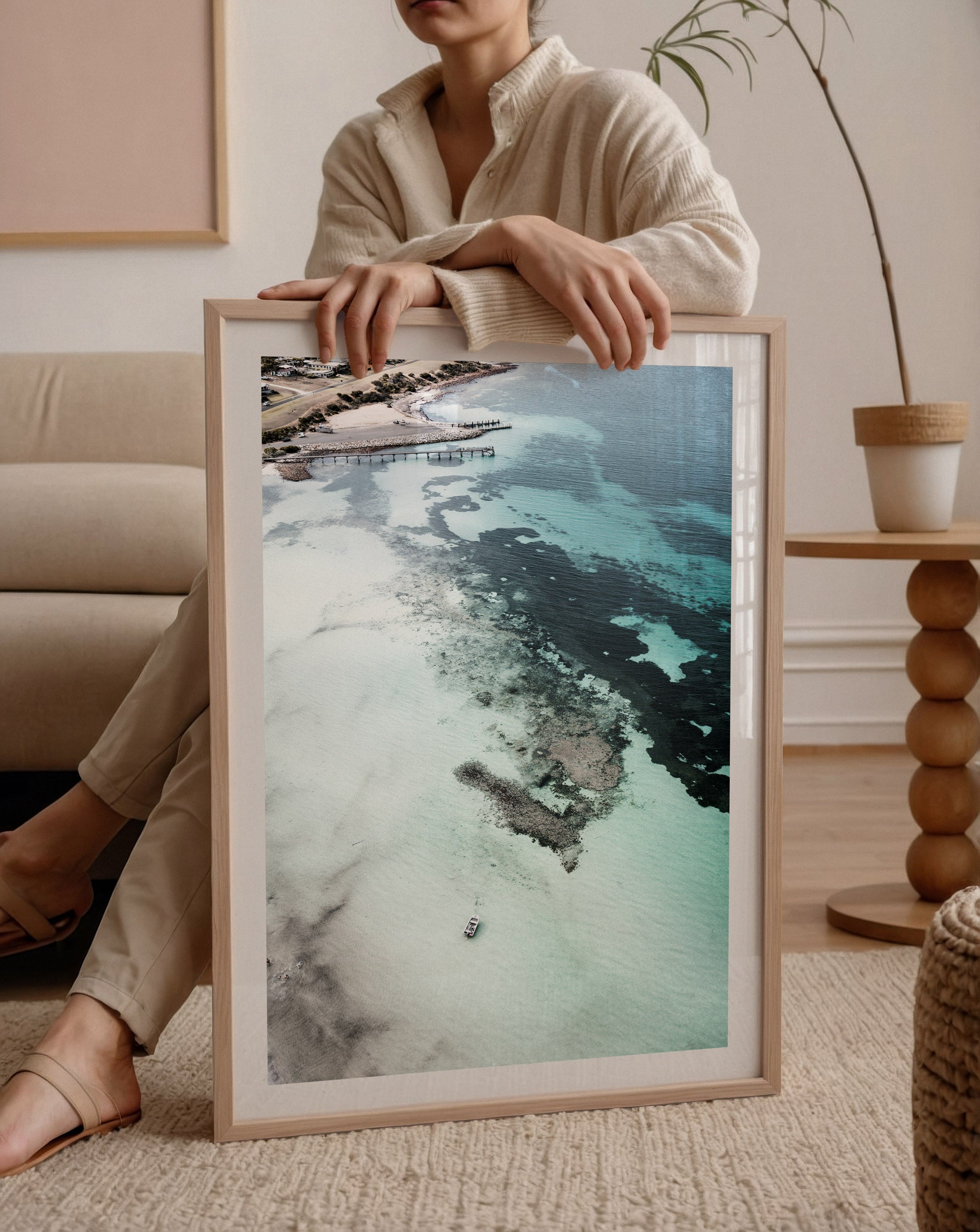 Professionally framed for a clean, modern finish, this artwork arrives ready to hang and integrates seamlessly into coastal, contemporary, and minimalist interiors. A refined way to introduce light, balance, and a sense of escape into your home.