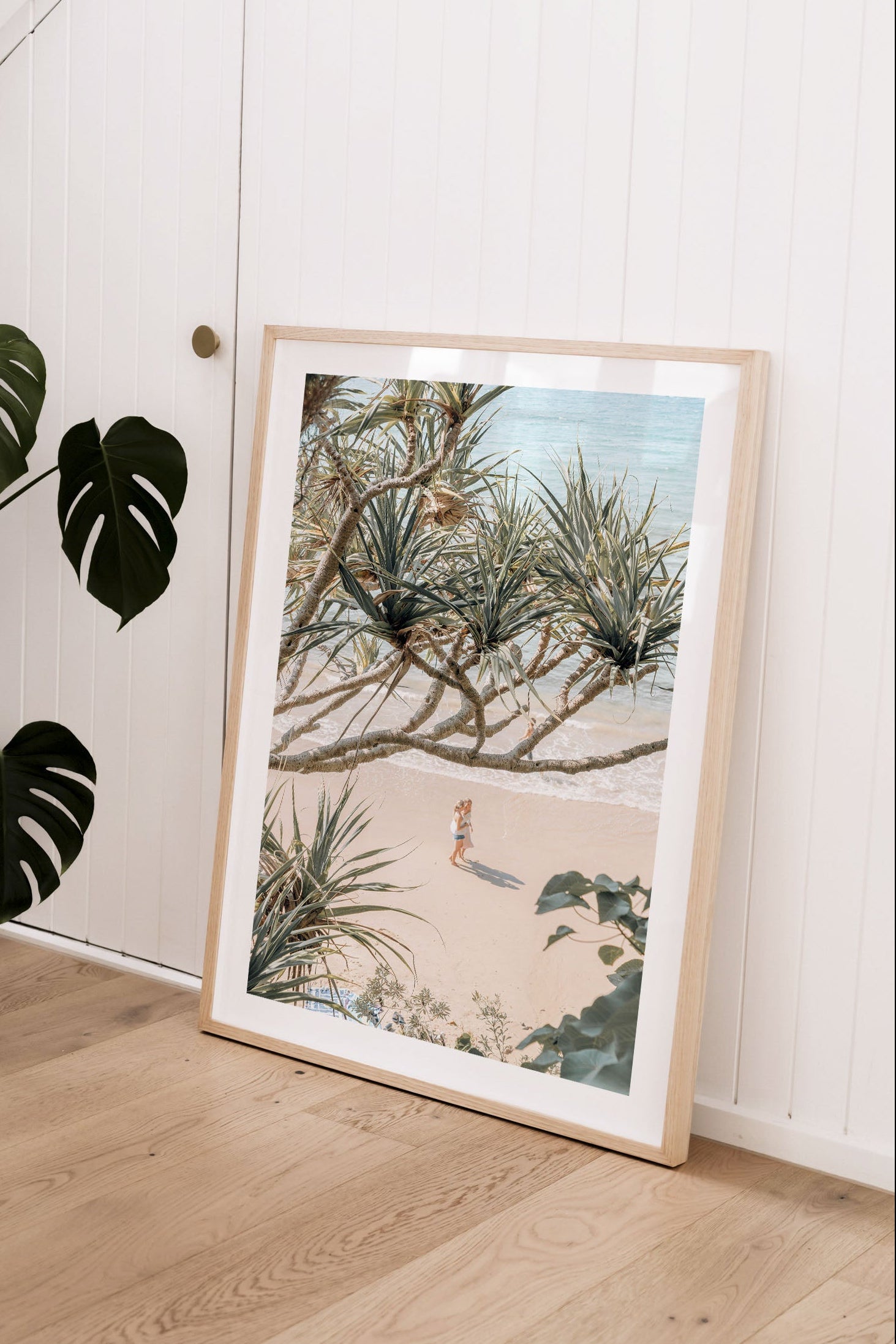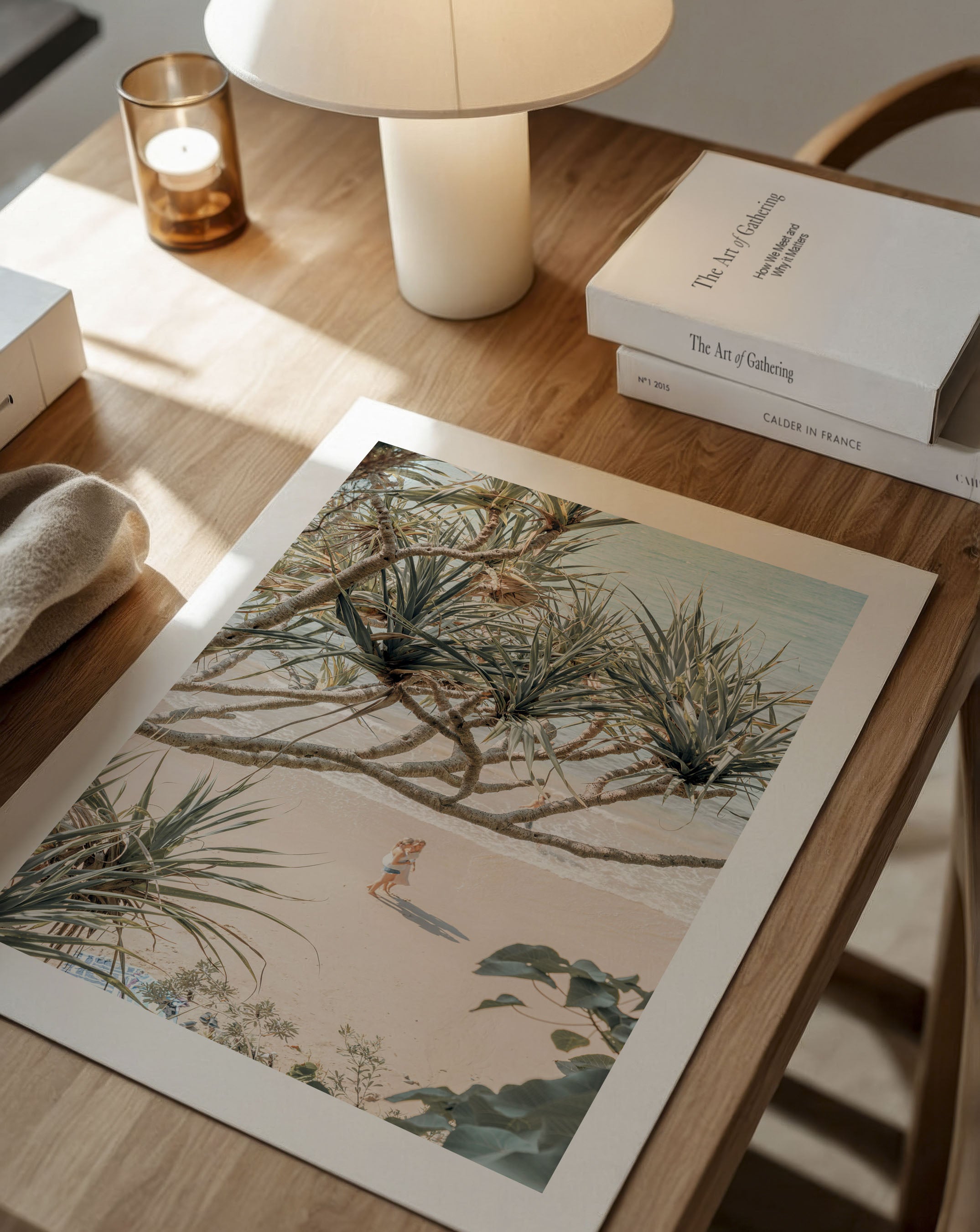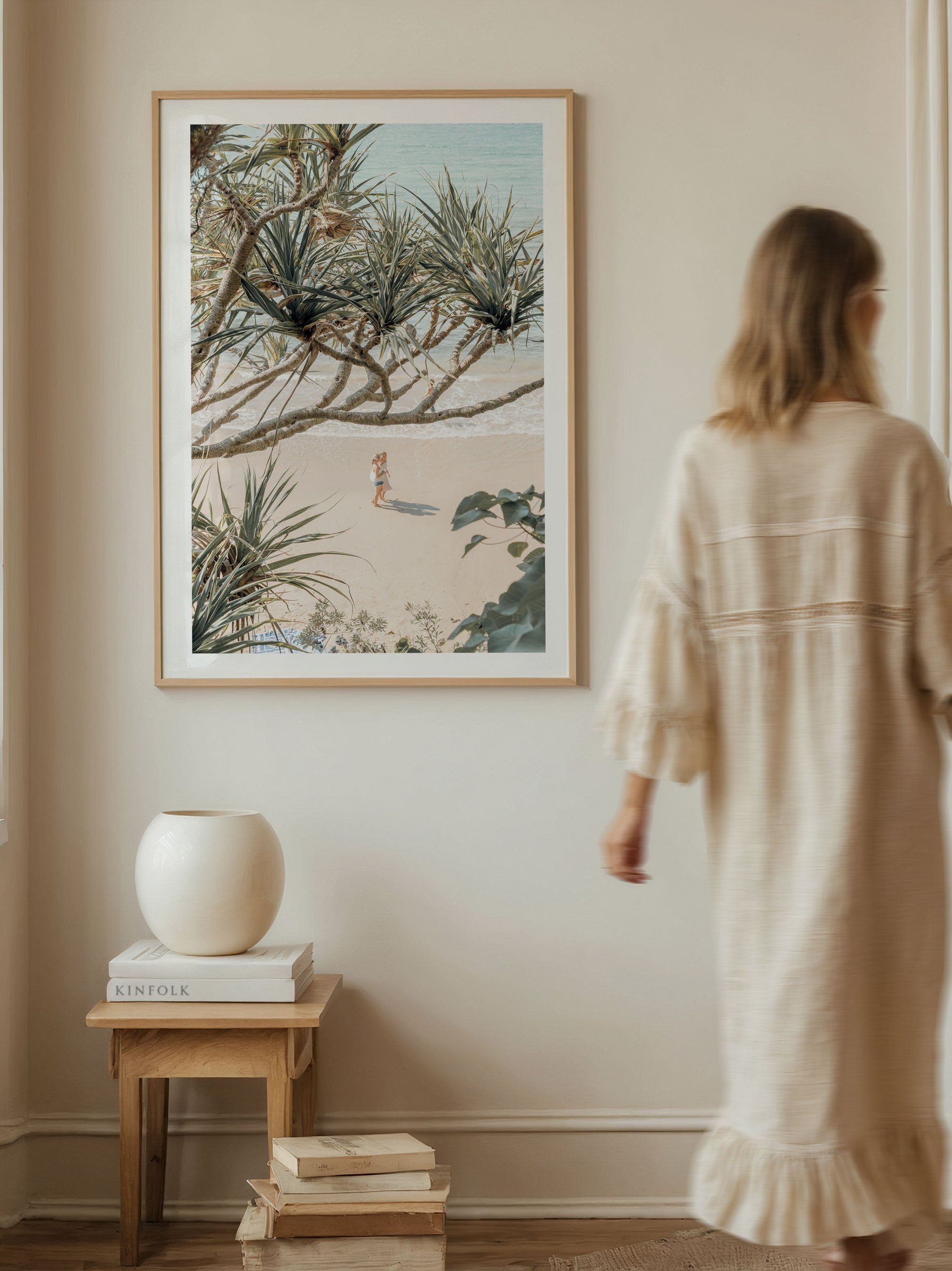 With soft ocean blues, golden sand, and lush greens, this print brings a fresh and airy energy to any space. Perfect for coastal, modern, or relaxed interiors, it adds a natural, breezy touch, creating a serene retreat right at home.