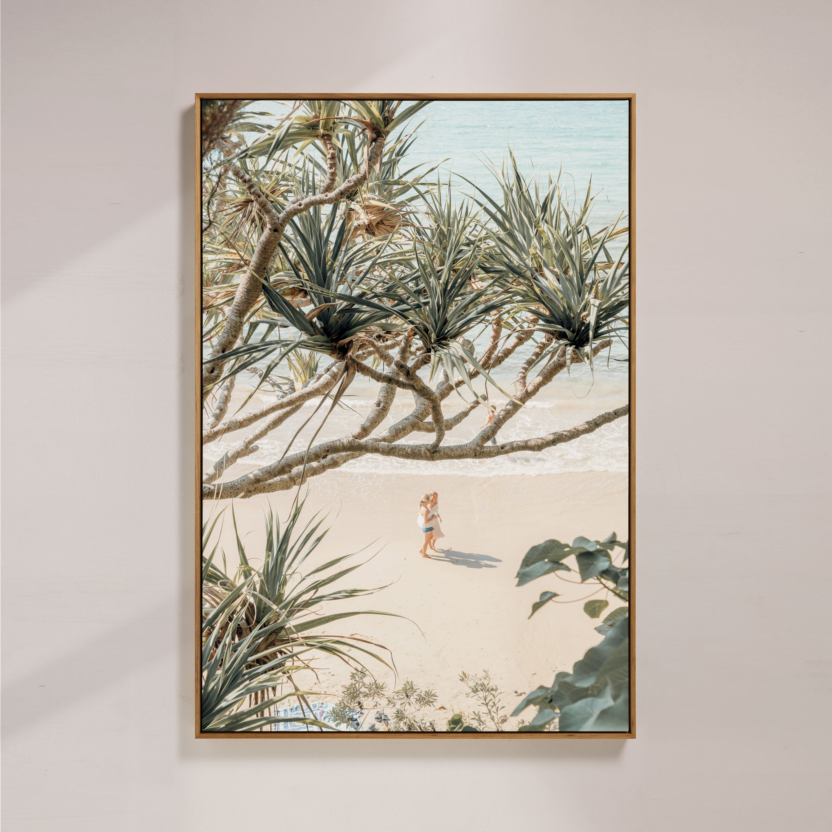 "Through The Palms" captures the essence of a slow, sunlit day by the coast pandanus trees swaying above, waves rolling onto the shore, and friends walking barefoot in the sand. It’s a scene that feels light, carefree, and effortlessly peaceful.